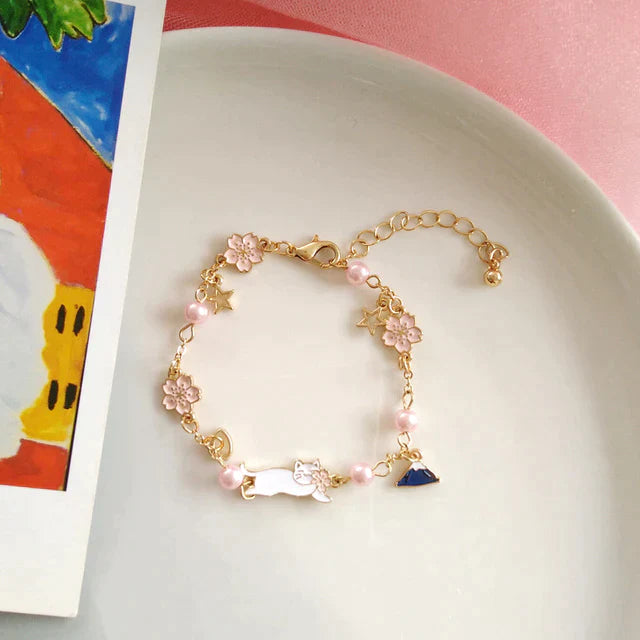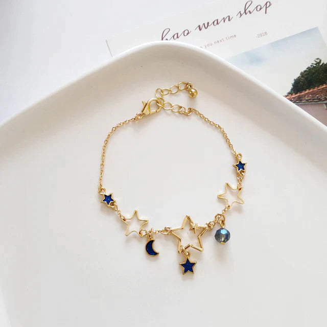 Japan Korea Star Moon armband för kvinnor flickor mode rosa kristall pärla kedja armband grossist designer smycken festgåva